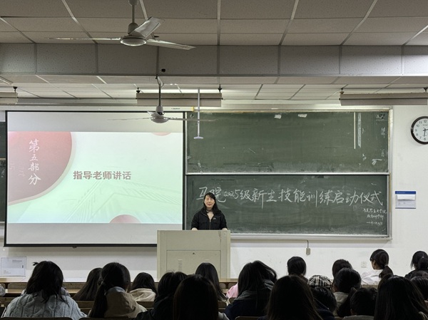 马院网10月22日电(记者 马伊雯)为了更好地开展马院师范生技能训练相关工作,10月21日晚,马克思主义学院于综阶301举行马院2025级新生技能训练课程启动仪式。本次活动由教育研修部副部王莹主持,副院长顾建红,23、24级教学员以及25级全体学生共同参与。