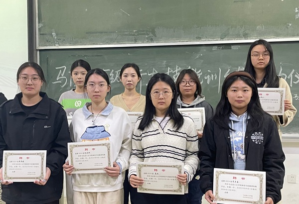 活动伊始,部长马伊雯首先对新到来的同学们进行学院技能训练工作的动员,详细说明了新学期部门的工作规划安排,指出大一同学要尽快适应和积极参与学院专门设置的有针对性的技能训练作业与课程,对“三字一话”以及讲课演课能力进行充分的重视,完成从学生到思政师范生的角色转变。之后,优秀教学员代表魏天娇总结了过去一年作为毛笔字小老师的工作经历,分享自己的教学经验和收获,为新任小老师们今后的课程教学工作提出自身建议,同时也表达了对于大一同学们利用好技能训练课程时间的期望。接着,新任教学员代表朱薇薇回顾了自己过去在技能训练课程上的进步和收获,从“学生”到“小老师”的身份转变,让她在小老师们的备课授课方面作出了新的详细见解,提出小老师自身要做到高标准严要求,力求在课程期间能够与大一同学们共同成长进步。顾建红副院长为23级优秀教学员和24级新任教学员颁发奖状和聘书。
