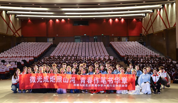 马院网11月13日电(记者 吴嘉玲 彭小益 刘梦琪)为纪念中国人民抗日战争暨世界反法西斯战争胜利80周年,11月12日晚,马克思主义学院走进淮师附中,开展“微光成炬照山河,青春作笔书华章”主题活动,打造行走的思政课堂。
