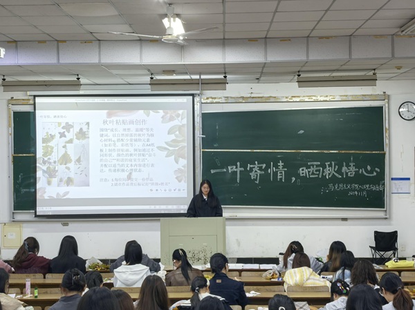 马院网11月8日电(记者 孙玮悦 李梦媛)为了引领学生走进自然,在拼贴创作中感受秋色的魅力。11月7日下午,马克思主义学院心理沟通部于综阶101开展“一叶寄情,晒秋悟心”主题活动,本次活动由心理沟通部部长李梦媛主持。