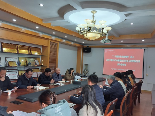 马院网12月21日电(记者 范香延)为深入学习贯彻党的二十届四中全会精神,探讨如何在课堂教学中更好融入党的二十届四中全会精神,进一步提高思政课教学质量,12月19日下午,马克思主义学院在行政楼309会议室举行“把党的二十届四中全会精神融入课堂教学全过程”专题集体备课会。校党委书记赵宜江、马克思主义学院领导班子成员、“习近平新时代中国特色社会主义思想概论”教研部主任杨成敏及全体任课教师参加备课会,备课会由马克思主义学院院长姜强强主持。