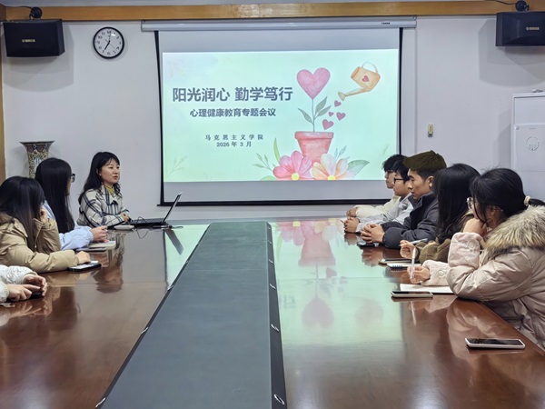 马院网3月17日电(记者 刘雪芹 李梦媛)3月17日晚,马克思主义学院于行政楼309召开2026年春季学期心理健康教育工作会议。本次会议由心理辅导员马晓雪主持,各班心理班长及心理沟通部全体成员参会。